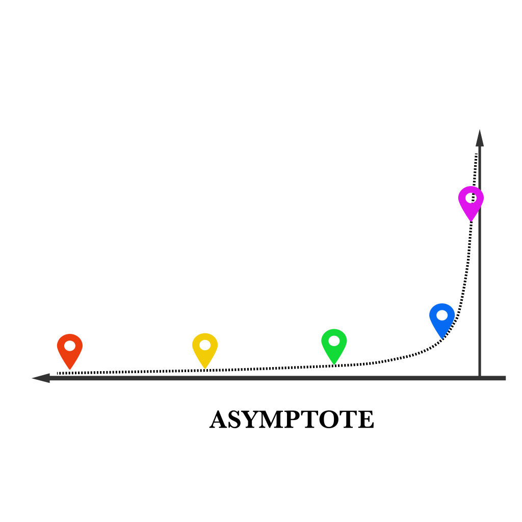 An Asymptote plot can be an abstract experience or a mental Journey. It is moving from one feeling or belief to another. There is a change that occurs during the Journey caused by a catalyst. There are physical actions that can happen to fulfill the Journey, but they may not seem helpful or successful.