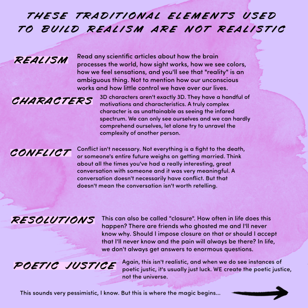 I've also found it liberating. After writing a one-act in this style, and then having it produced, I finally felt like I wrote the way I think and the way I thought entertained and confused, yet amused, an audience. I want this for you, too.